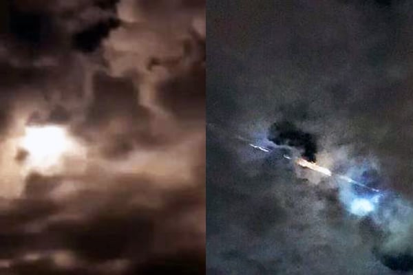 Đoạn video ghi lại hình ảnh khá rõ nét, chỉ cần dùng mắt thường cũng có thể trực tiếp thấy quỹ đạo “quả cầu lửa” rơi xuống.