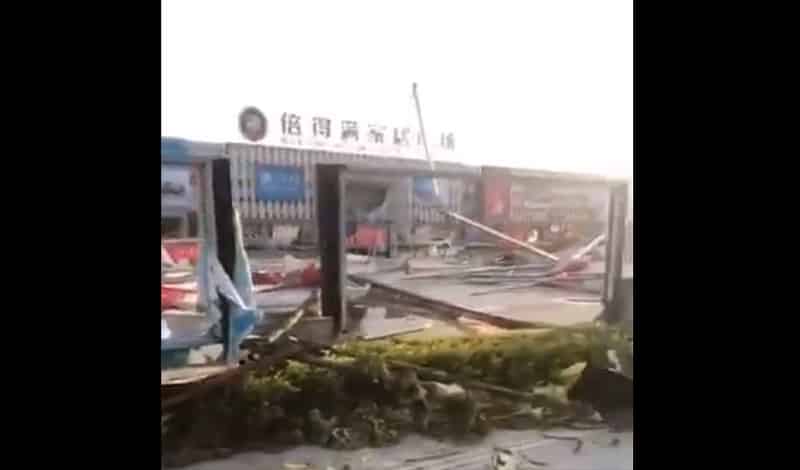 Theo hình ảnh cơn bão hoành hành do người dân địa phương ghi lại được, một số lượng lớn cây xanh và đèn đường đổ sập trên các tuyến phố, nhiều biển hiệu lớn trong thành phố cũng bị tốc mái, còn có người dân bị mảnh sắt bay làm bị thương. Ngoài ra, đồ chơi trong sân chơi dành cho trẻ em của một trung tâm mua sắm ở Trương Gia Cảng cũng bị gió mạnh thổi bay, một số phụ huynh liên tục tìm con trong khung thép đổ.