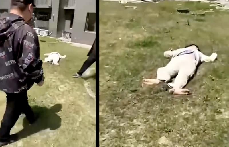 Hôm 7/4, một đoạn video được đăng tải trên mạng cho thấy một người đàn ông lớn tuổi, trên người đang có ống tiếp nước và nằm trên đệm ngoài cổng ủy ban khu phố, người đàn ông này không có dấu hiệu của sự sống. Cổng sắt của ủy ban khu phố đóng chặt, bên trong không có ai.