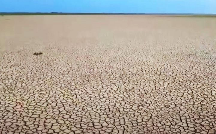 Đường cao tốc trên mặt nước ở Vĩnh Tu, Giang Tây đã trở thành đường cao tốc trên thảo nguyên. Video trực tuyến cho thấy, sau khi nước hồ Bà Dương rút, từng mảng đất lớn nứt toác, thậm chí có nơi còn có thể bị kẹt chân.