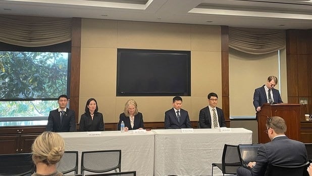Ngày 23/5/2023, Quốc hội Hoa Kỳ đã tổ chức một cuộc họp báo về Pháp Luân Công. YouTuber Trung Quốc Chu Tử Định (thứ 2 bên phải) chia sẻ trải nghiệm về việc cha anh bị ĐCSTQ kết án oan tại cuộc họp báo. (Ảnh: Đài Á Châu Tự Do)