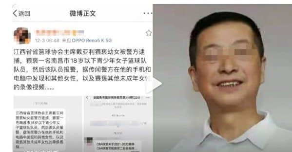Sau khi nữ ngôi sao quần vợt Bành Soái tố cáo bị xâm hại tình dục bởi ông Trương Cao Lệ – cựu Ủy viên Ban Thường vụ Bộ Chính trị Đảng Cộng sản Trung Quốc, Chủ tịch Hiệp hội Bóng rổ Giang Tây cũng bị phanh phui liên quan đến hành vi này với một bé gái vị thành niên.