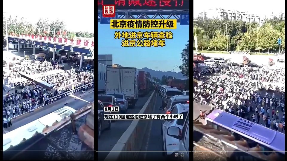 Đoạn video được chia sẻ trên mạng cho thấy, ngày 1/8, trạm kiểm soát đường cao tốc đi vào Bắc Kinh từ Trương Gia Khẩu (tỉnh Hà Bắc) đã kiểm tra nghiêm ngặt các phương tiện đi vào Bắc Kinh, khiến đường cao tốc bị tắc nghiêm trọng. Theo người quay video, “các cuộc kiểm tra theo thông lệ, thấy đường từ Trương Gia Khẩu ở Hà Bắc đến Bắc Kinh đã được chuyển hướng từ đường cao tốc Bắc Kinh – Tân Cương sang đường quốc lộ G110. Hiện tại đường cao tốc quốc lộ G110 đã bị tắc nghẽn hơn 2 giờ ở Bắc Kinh và về cơ bản nó không di chuyển.” Cư dân mạng tiết lộ các phương tiện đi vào Bắc Kinh bị ùn tắc kéo dài hơn 100 km trên đường cao tốc.
