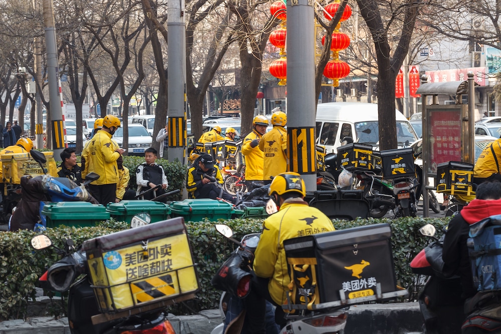 Vào tháng 4 năm nay, các nam nhân viên xe công nghệ của Meituan ở thành phố Sán Vĩ tỉnh Quảng Đông đã đình công tập thể vì không hài lòng với đơn giá và tiền công bị giảm. Tuy nhiên Meituan đã huy động các tài xế vùng xung quanh trợ giúp với giá cao, khiến các tài xế ở thành phố Sán Vĩ bất mãn, sự kiện từng lên đầu bảng xếp hạng tìm kiếm nóng trực tuyến.