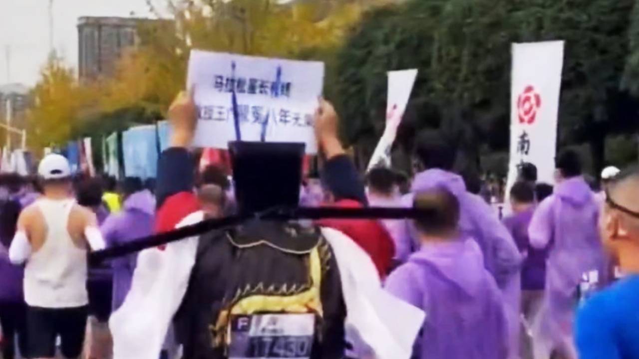 Theo một đoạn video do người dùng “Jackson” đăng trên mạng xã hội X cho biết, vào ngày 17/11, tại một cuộc thi marathon ở thành phố Nam Kinh, tỉnh Giang Tô, Trung Quốc, giáo sư Vương Quảng của Đại học Khoa học và Công nghệ Nam Kinh đã “ăn mặc giống Bao Công”, giơ tờ giấy trắng kêu oan, sau đó ông bị cảnh sát đưa đi.