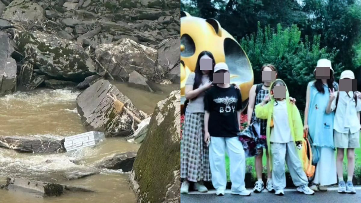 Ngày 2 tháng 7 năm 2025, sáu du khách từ Giang Tô khi đang đi du lịch Tứ Xuyên đã không may gặp tai nạn xe hơi, rơi xuống vách đá và mất tích dưới nước. (Ảnh chụp màn hình/Ảnh tổng hợp)
