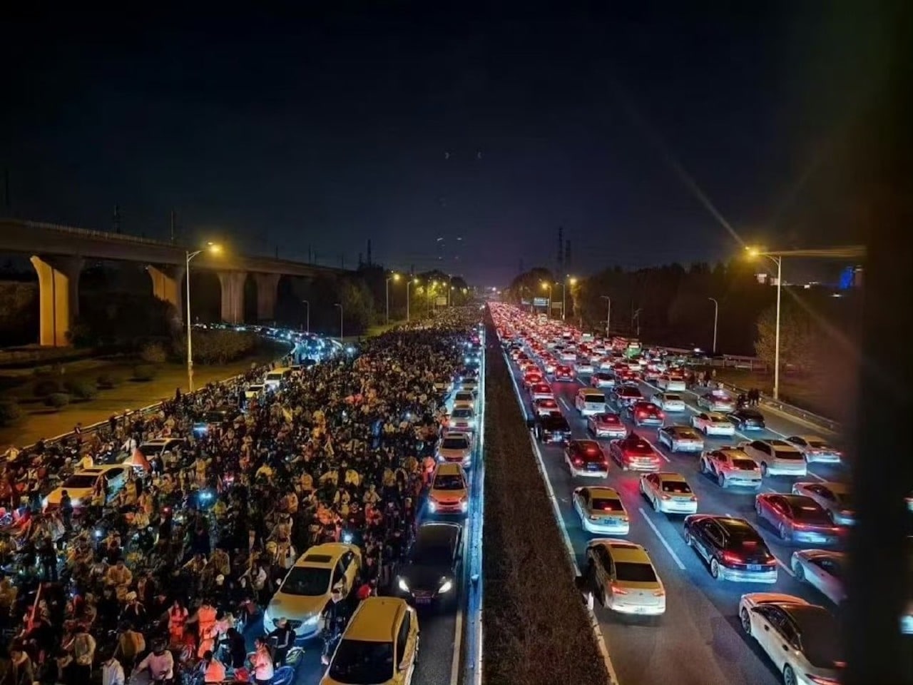 Trang “Người quan sát” (Guancha.cn) đưa tin, tối 8/11, lưu lượng giao thông trên vành đai 4 phía đông Trịnh Châu rất lớn, tình trạng tắc nghẽn nghiêm trọng. Một số đoạn từ Trịnh Châu đến Khai Phong đã bị “đội quân xe đạp” chiếm đóng hoàn toàn. Ông Lý, một công dân của Trịnh Châu, cho biết thường chỉ mất hơn một giờ để đi từ Trịnh Châu đến Khai Phong, nhưng hôm nay ước tính mất 3 giờ cũng chưa chắc đến được. “Có người đi xe đạp, xe đi máy, có người đi bộ, cũng có người xem náo nhiệt, quá nhiều người.”