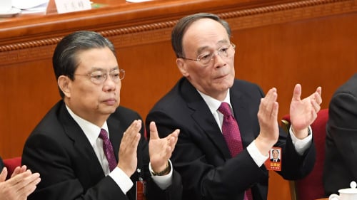 Đương nhiệm Bí thư Ủy ban Kiểm tra Kỷ luật Trung ương Triệu Lạc Tế (trái) và Phó Chủ tịch nước Vương Kỳ Sơn (trái)