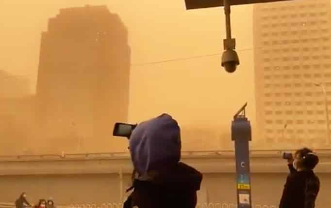 Lúc 8 sáng ngày 15/3, Đài khí tượng Trung ương Trung Quốc công bố thông tin “Nâng cấp cảnh báo bão cát: 12 tỉnh thành phía Bắc xuất hiện cát bụi vàng trên phạm vi lớn”. Theo đó, từ sáng ngày 14 – 15, Bắc Kinh, phía bắc tỉnh Hà Bắc, phía tây lòng chảo Nam Cương của Tân cương, trung tây bộ tỉnh Cam Túc, Nội Mông Cổ và phía bắc tỉnh Sơn Tây xuất hiện cát bụi, một số khu vực xuất hiện bão cát.