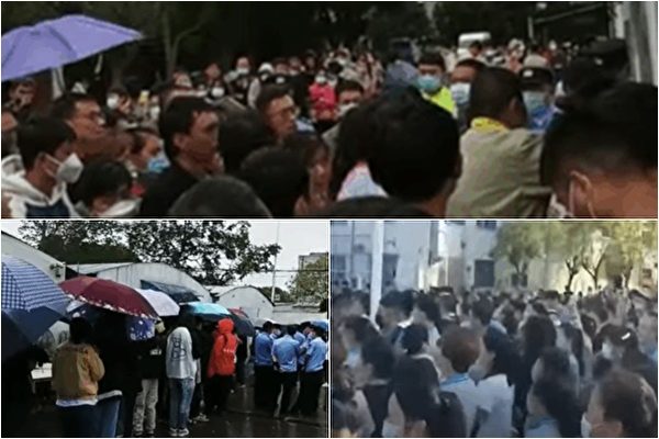 Do ảnh hưởng bởi cắt điện, lương theo giờ của “công nhân làm việc theo giờ” đã bị hạ xuống. Trong hai ngày 11/10 và 12/10, gần 1.000 công nhân của Công ty Máy tính Tinh Nguyên Ngô Giang, tỉnh Giang Tô, đã biểu tình tại nhà máy, yêu cầu công ty phải giải quyết lương và sẽ nghỉ việc. (Ảnh: Người được phỏng vấn cung cấp)