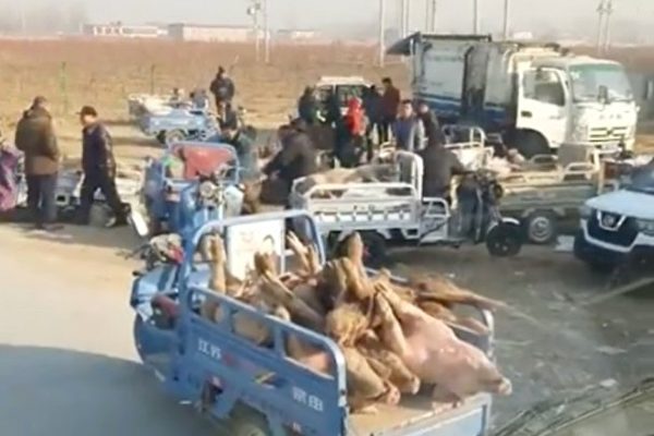 Tình hình dịch heo châu Phi tại trung Quốc liên tục lan truyền, nhưng những tiểu thương bất lương bị nghi ngờ buôn bán phi pháp heo chết trong thời gian cả Trung Quốc đang đẩy mạnh phòng chống dịch bệnh này. Trên mạng xã hội Facebook gần đây lan truyền một đoạn video cho thấy, một số người buôn bán heo bất lương đã vận chuyển heo chết đến vùng ngoại thành hẻo lánh đến bán cho thương lái. Điều đáng chú ý, “chợ giao dịch heo chết” này dường như có quy mô lớn, số lượng người rao bán, người đang lựa heo cũng không phải là ít.