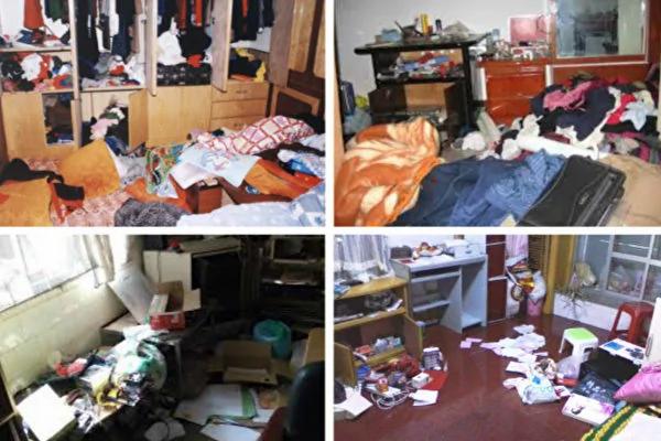Cảnh tượng lộn xộn tại nhà các học viên Pháp Luân Công sau khi bị cảnh sát lục soát, thu giữ tài sản và bắt giữ phi pháp. (Ảnh: mạng Minh Huệ)