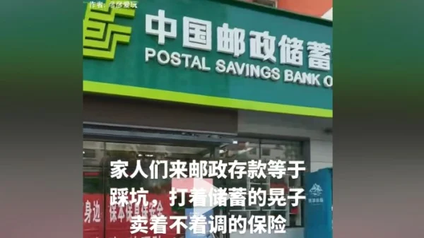 Ngày 10/6/2025, điểm giao dịch Vệ Thành của Ngân hàng Bưu chính Tiết kiệm Trung Quốc tại thành phố Thanh Trấn, Quý Dương, tỉnh Quý Châu xảy ra “vỡ trận” tiền gửi có kỳ hạn. Một blogger cho biết, năm đó ngân hàng này cam kết với người dân trong thôn rằng mỗi năm gửi 10.000 nhân dân tệ, sau 5 năm sẽ được rút cả gốc lẫn lãi là 58.000 nhân dân tệ. Nhưng nay đã đến hạn mà ngay cả tiền gốc cũng không lấy lại được. (Ảnh chụp màn hình video)