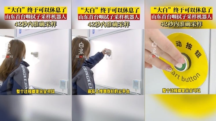 Tổng hợp thông tin từ truyền thông Trung Quốc Đại Lục, robot lấy mẫu ngoáy họng đầu tiên đã ra mắt tại thành phố Yên Đài, tỉnh Sơn Đông cách đây vài ngày. Robot này do Viện nghiên cứu robot TsingkeJia tại Yên Đài và Phòng thí nghiệm cơ chế và thiết bị robot hiện đại của Đại học Thanh Hoa phát triển. Theo tuyên bố, mỗi người có thể hoàn thành việc lấy mẫu axit nucleic tự phục vụ chỉ trong 42 giây và nhấn mạnh rằng “sản phẩm hoàn toàn tự chủ về quyền sở hữu trí tuệ, và được nội địa hóa 100%”.