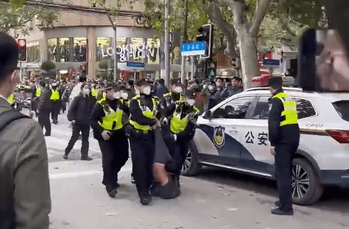 Cảnh sát bắt người biểu tình ở Thượng Hải. (Ảnh chụp màn hình video)