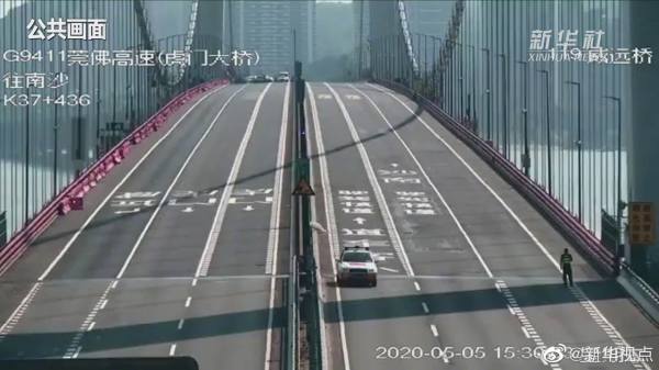 Mới đây cầu Hổ Môn ở tỉnh Quảng Đông, Trung Quốc, xuất hiện hiện tượng lắc động như sóng. (Ảnh cắt từ video)