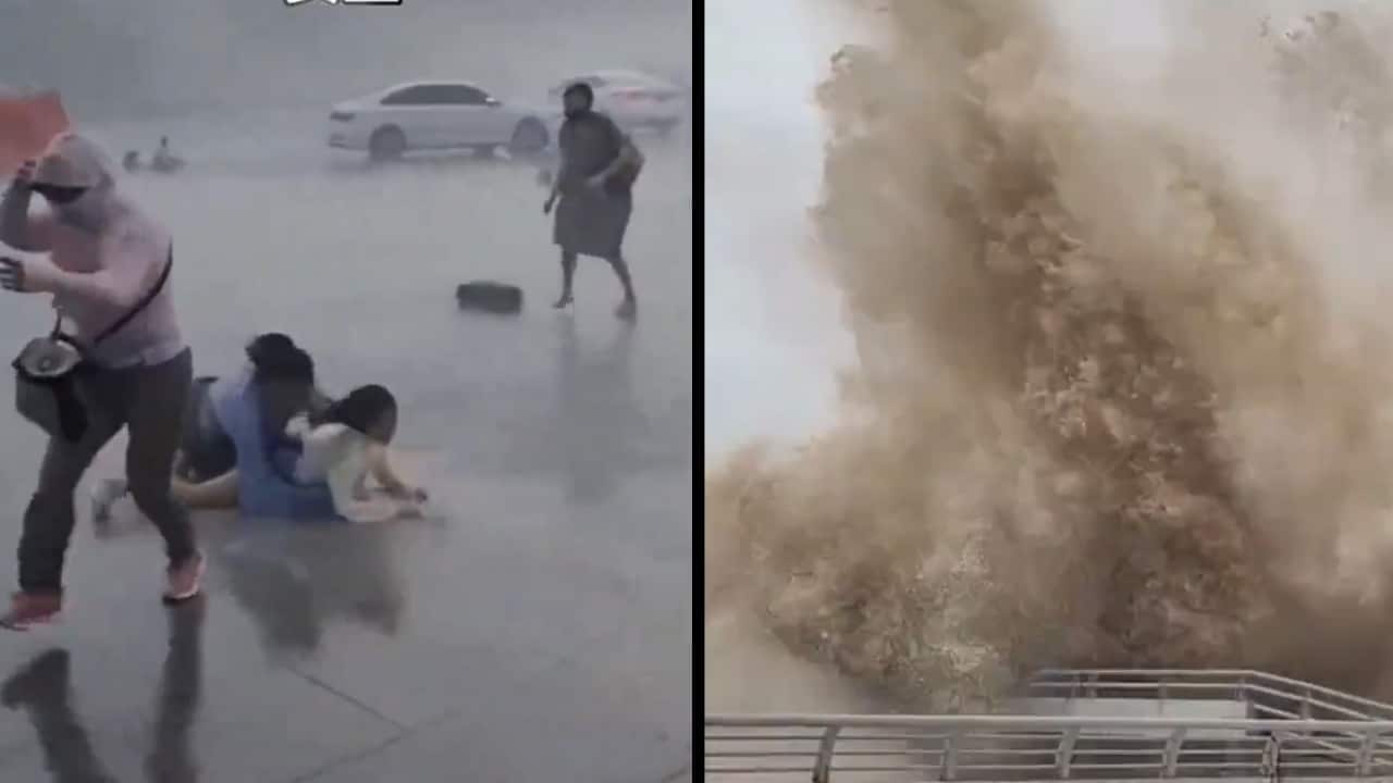 台风“格美”太猛,人被吹得连滚带爬!7月25日下午,#台风 #格美 #登陆 #福建,最大风力达到了12级以上,狂风横扫一切,并带来豪雨。人在路上根本无法正常行走,有的被直接吹翻在地;台风在海岸边掀起数十米高 #巨浪;许多人不得不事先逃离家园… pic.twitter.com/bKDs7VyH8q