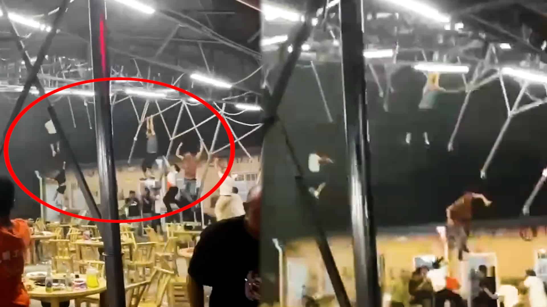 [VIDEO] TQ: Gió mạnh thổi bay cả người và mái che, 1 người bay lên nóc nhà