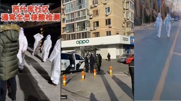 Một đoạn video được cư dân mạng đăng tải lên mạng xã hội cho thấy dịch bệnh ở Bắc Kinh dường như cũng rất nghiêm trọng. Ngày 24/12, tòa nhà văn phòng BMW của Bắc Kinh xác nhận rằng tất cả nhân viên của tòa nhà đang được xét nghiệm axit nucleic. Các khu dân cư Tây Thập Khố (Xishiku) và Thuận Thiên Phủ (Shuntianfu), quận Tây Thành đã tiến hành làm xét nghiệm axit nucleic cho tất cả người dân suốt đêm 24/12. Trung tâm Lợi Tinh Hàng (Lixinghang Center) trên phố Vọng Kinh thuộc quận Triều Dương đã đóng cửa vào ngày 25/12. Khu dân cư Nghi Tân (Yibin) ở quận Thuận Nghĩa đã áp dụng quản lý khép kín từ ngày 25/12. Bến cảng của Khu Thương mại Tự do Thiên Trúc (Tianzhu), Bắc Kinh đã bị đóng cửa vào ngày 25/12 và các nhân viên được kiểm tra axit nucleic ngay trong đêm.