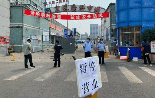 Tờ Nhật báo Thanh niên Bắc Kinh đưa tin, sau khi chợ Tân Phát Địa đóng cửa vào ngày 13/6, lối ra vào chợ đã được rào chắn, cấm người và xe cộ ra vào. Một lượng lớn cảnh sát vũ trang và công an cũng đến trực gác xung quanh khu vực chợ.