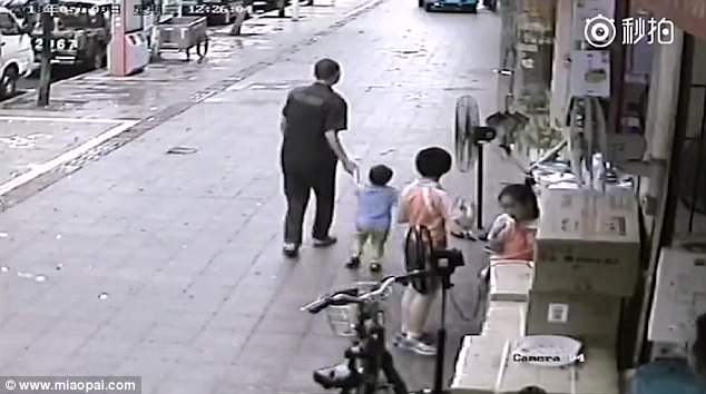 Bức ảnh cho thấy, bé trai đã phản ứng dữ dội. Sau khi người đàn ông kéo cậu bé vài bước, anh trai cậu bé cảm thấy có điều gì đó khác thường và lập tức chạy tới cứu em trai mình. Cha mẹ cậu bé đã đăng một đoạn video lên Wechat với bạn bè mình và bình luận: “Thật ngông cuồng, dám ngang nhiên bắt cóc con trai út của tôi ngay trước cửa hàng nhà tôi! May mà con trai lớn nhà tôi nhìn thấy, nếu không thì hậu quả thật không biết thế nào!”