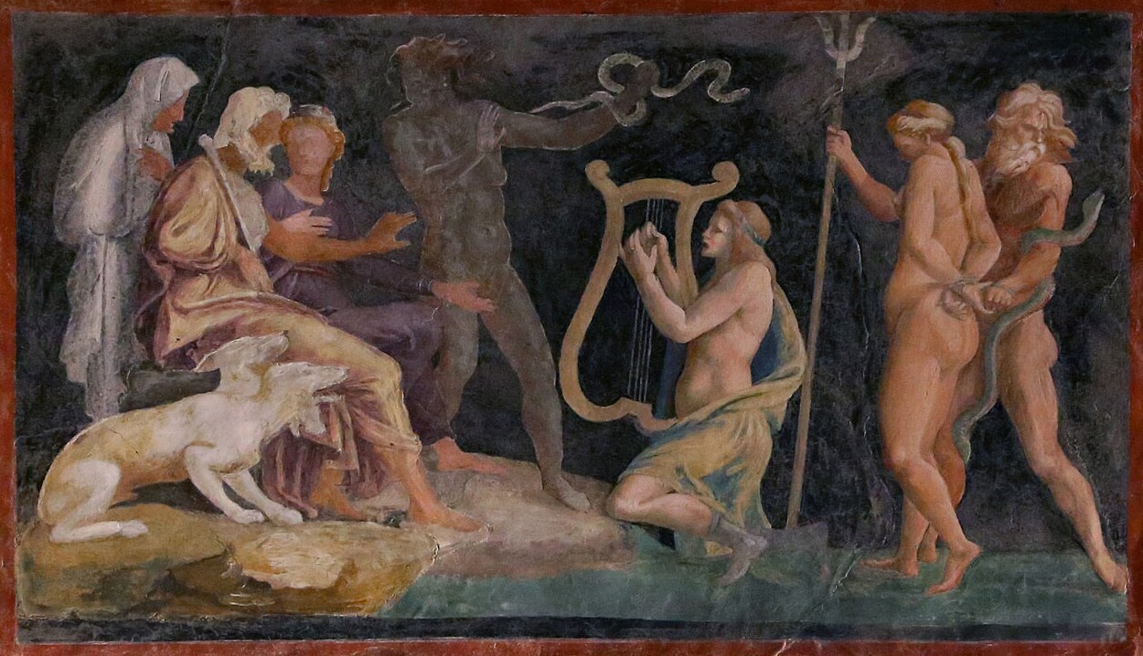 Nhân vật thứ hai vượt qua Cerberus là Orpheus, một nhạc sĩ thiên tài. Trong hành trình xuống cõi chết để tìm người vợ yêu dấu Eurydice, tiếng đàn lia của Orpheus đã làm nguôi cơn điên loạn của Cerberus và khiến con chó ngao gục xuống say ngủ. Âm nhạc của Orpheus vượt qua con chó ba đầu chính là biểu tượng của nghệ thuật có sức mạnh bất tử. Hành trình cứu vợ dưới địa ngục của Orpheus cũng cho thấy nghệ thuật có thể thách thức cái chết.