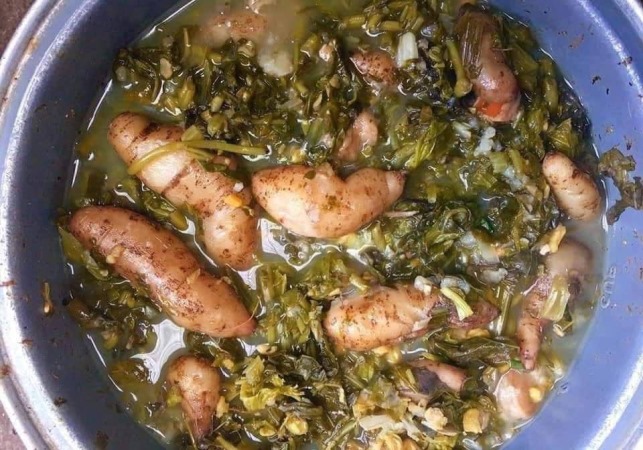 Mà không chỉ là lợn ăn đâu nhé! Cũng có khi ông vừa bóp cám lợn vừa nhặt xem có quả trứng ung hay củ khoai nào ăn được thì lấy ra cho các con ăn. Bố đã ăn cả trứng ung và khoai lấy ra từ nồi cám đó!