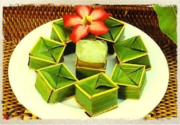 dt su sê Bánh làm bằng bột nếp lọc, trong và quánh, màu hổ phách, có nhân bên trong.