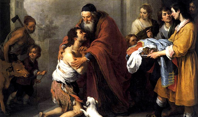 Khi người con thứ còn đang loạng choạng đi ở đằng xa, người cha đã trông thấy anh. Thấu hiểu và chạnh lòng thương, ông chạy ra ôm hôn con trai mình…