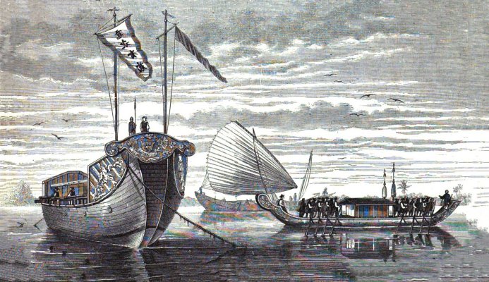 Năm 1873 vua Tự Đức được các quan hộ giá ra chơi ở cửa biển Thuận An thì có 9 chiếc tàu buồm chở hàng của Triều đình từ Bắc kỳ vào Huế.