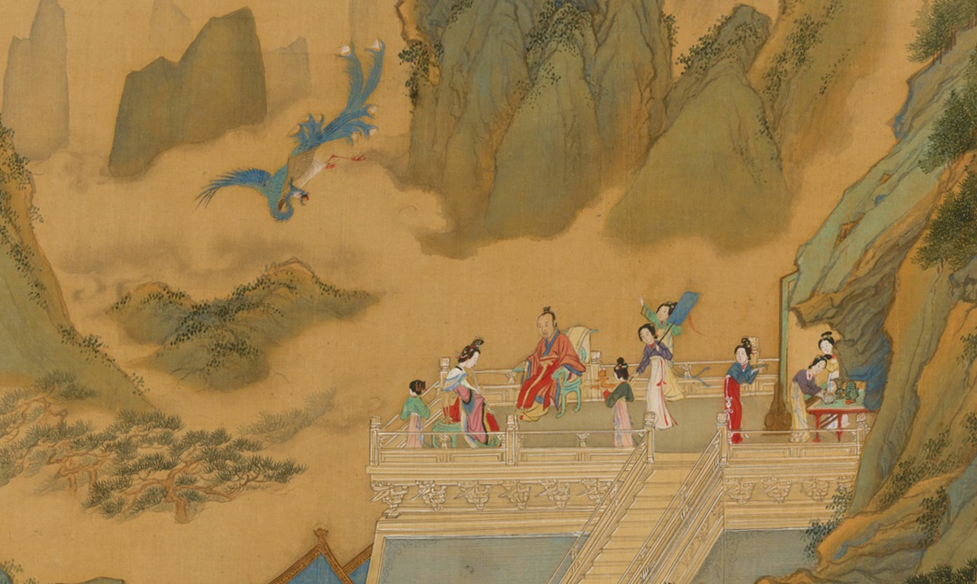 Tranh cổ của họa sĩ Cừu Anh thời Minh, mô tả cảnh diễn tấu sáo cho đế vương, dẫn chim Phượng đến. (Tranh: Public Domain)