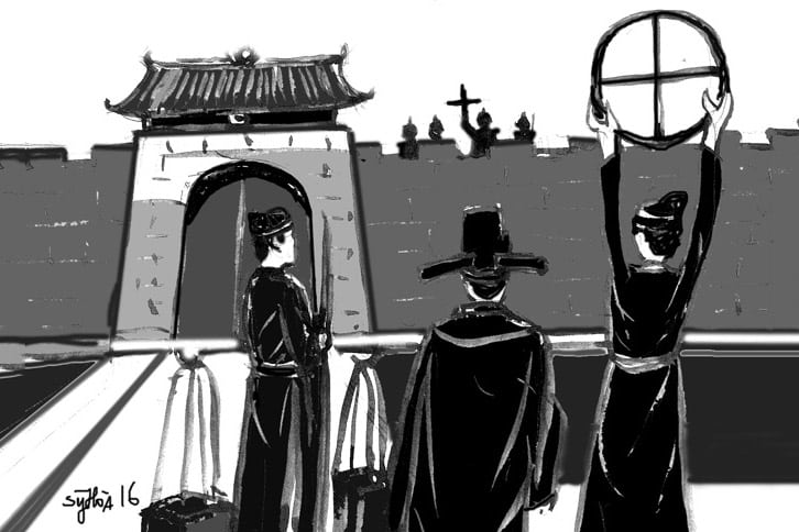 Nghiêu Tư liền bảo phó sứ cùng ngôi lên, lập tức một quan viên đến hạch tội dám ngồi lên nơi có hai chữ “Kính Thiên”.