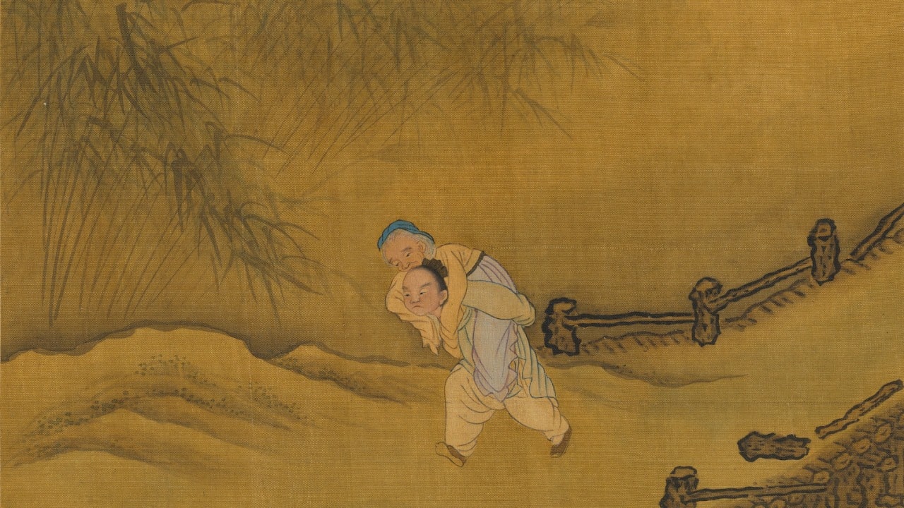 Dựa theo “Câu chuyện đạo đức truyền thống Trung Hoa: Giang Cách cõng mẹ“