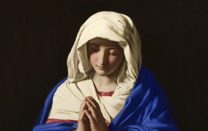 Bắt đầu từ sau thời Trung cổ, màu sắc của bộ trang phục này là cách thể hiện thông thường đối với Thánh Maria trong hội họa truyền thống phương Tây. Đương nhiên, trong hội họa truyền thống, bộ trang phục có màu sắc trong đỏ ngoài xanh này cũng thường được sử dụng cho trang phục của Chúa Giê-su.