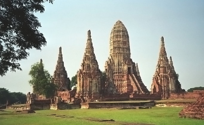 Một ngày tháng sáu, từ Bangkok tôi đi “bụi” đến Ayutthaya bằng xe lửa. Nhà ga Hualamphong tuy không phải là ga chính nhưng khang trang.Từ đây cứ một tiếng có một chuyến “tàu chợ” đi Chiang Mai – một điểm du lịch nổi tiếng của Thailand. Lên tàu này đi khoảng hai giờ thì đến Ayutthaya – kinh đô cổ từng tồn tại hơn 400 năm từ giữa thế kỷ 14 đến nửa cuối thế kỷ 18.