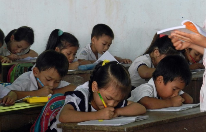 Lần này, chúng ta hãy cùng quan sát giờ quốc ngữ của học sinh lớp 4. Chủ đề của giờ học này là “Viết thư”. Người dạy là nữ giáo viên nhiều kinh nghiệm đã có 15 năm dạy học. Cho dù là có kinh nghiệm 15 năm nhưng tôi có cảm giác cô mới chỉ khoảng hơn 35 tuổi một chút và trẻ trung, nhiệt huyết.
