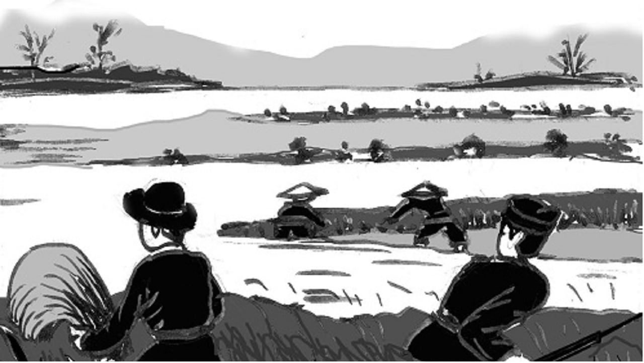 Nghĩa quân họp lại nghĩ cách thoát ra, một nửa thì muốn chạy ra dưới làn đạn quân Pháp, hy vọng sẽ có người thoát ra an toàn, một nửa còn lại thì muốn tìm nơi tránh đại bạc quân Pháp, nếu quân Pháp vào làng thì sẽ chống trả.