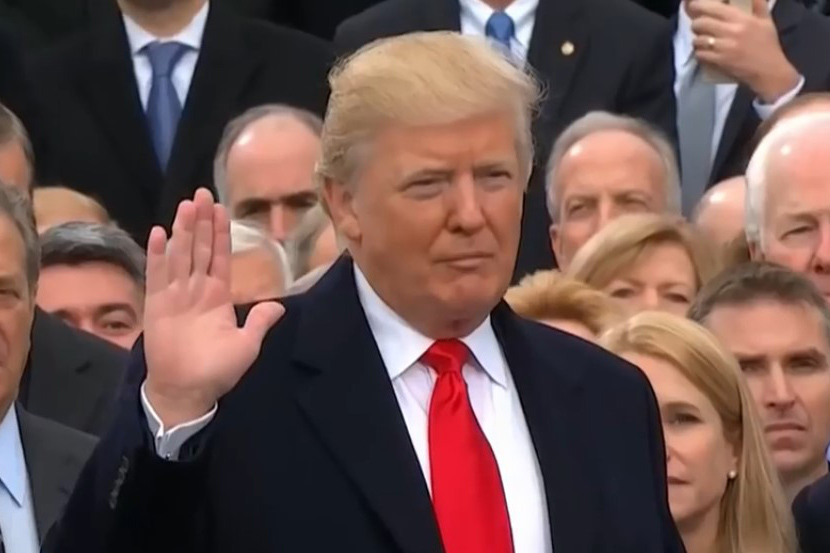 Trưa ngày 20/1/2017, tổng thống tân cử Donald Trump đặt tay lên quyển kinh thánh, đọc lời thề trở thành tổng thống thứ 45 của Hợp Chúng quốc Hoa Kỳ: “Tôi, Donald John Trump, trịnh trọng tuyên thệ rằng tôi sẽ đảm đương vị trí tổng thống Mỹ một cách trung thành, và sẽ làm hết khả năng để giữ gìn, duy trì và bảo vệ hiến pháp Mỹ.”