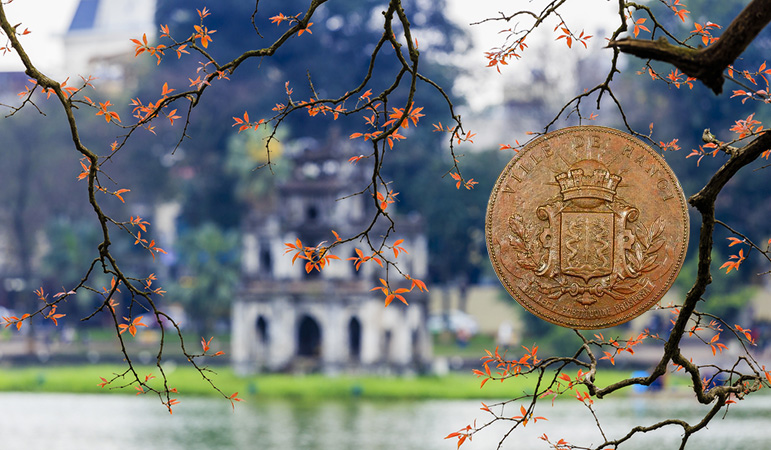 Khi nói đến biểu trưng của Hà Nội, ai ai cũng nghĩ ngay đến Khuê Văn Các. Nhưng có thể nhiều người chưa biết Logo cổ của Thăng Long – Hà Nội xưa có từ năm 1902 và được sử dụng đến 1954 (Indochine, Hanoï, Fêtes pour l’inauguration du Pont sur le fleuve Rouge, 1902). Cũng giống như tất cả các thành phố của Pháp và Châu Âu, dưới thời Pháp thuộc Hà Nội cũng từng có một huy hiệu / biểu tượng (Coat of Arms) cho riêng mình.