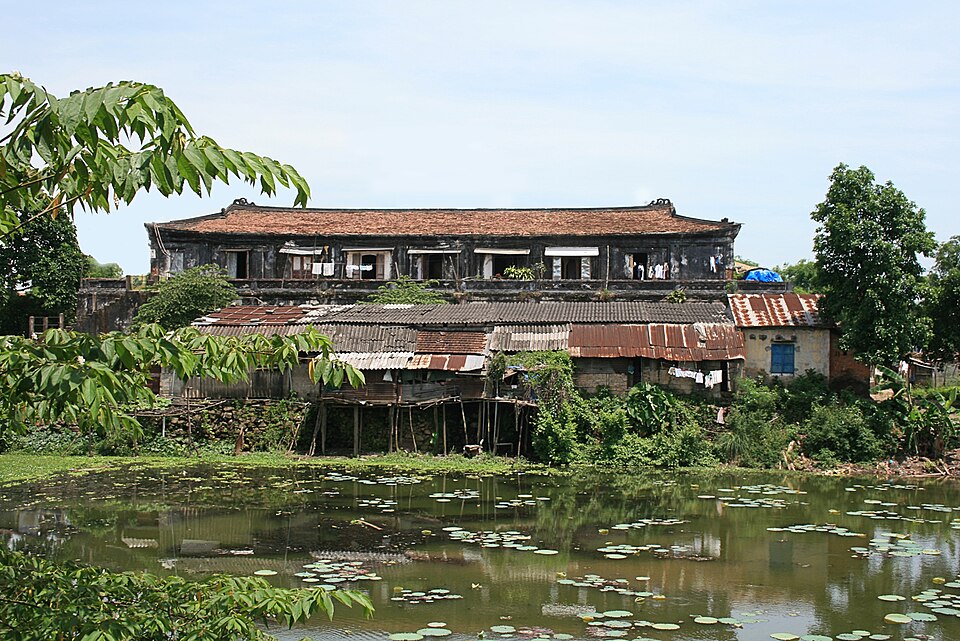“Ở gần con kênh, nơi phần uốn cong thành góc hình thước thợ, có thư viện Hoàng gia, tòa nhà hai tầng bên trên mặt đất, trông khá kỳ quái, được xây dựng dưới triều Minh Mạng. Tòa nhà nầy không theo một kiểu thức nào cả; đó là một hỗn hợp kiến trúc Trung Hoa và kiến trúc châu Âu mà người ta đã tìm ra để mô phỏng lúc bấy giờ”.