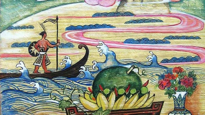 (Tranh “Sự tích dưa hấu” của họa sĩ Bùi Hoài Mai, sử dụng dưới sự đồng ý của tác giả)