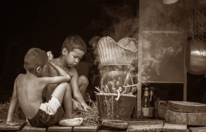 Ngày xưa bố lên lớp một là đã phải nấu cơm giúp ông bà rồi. Bếp nhà ông bà ngày xưa không có cả bếp ga lẫn bếp điện (bếp từ) như nhà mình đang dùng đâu. Ngày thường ông bà sẽ nấu bằng củi, lá, trấu. Những khi có việc gì đó cần làm cỗ như có giỗ, tết thì ông đắp bếp lò và nấu bằng than. Nấu bằng củi thì còn dễ vì chỉ khó lúc ban đầu khi nhóm lửa lên cho củi cháy thôi nhưng nấu bằng lá thì khác, khó hơn rất nhiều. Lá, nhất là lá tre, cháy rất nhanh. Vèo một cái lửa đã liếm sạch lá. Cần phải ngồi ngay bếp để đưa lá vào liên tục sao cho lửa không tắt giữa chừng. Nếu nấu mà để lửa gián đoạn liên tục thì kiểu gì cơm cũng chín không đều. Khi cho lá vào cũng phải cho một lượng vừa phải. Cho nhiều quá bếp bị bí sẽ khói mù mịt. Người nấu sẽ chảy nước mắt giàn giụa. Hơn nữa thi thoảng phải biết dùng que cời để nâng lá lên hoặc gạt tro, than ra phía sau bếp để không khí vào nhiều hơn, lửa cháy tốt hơn.