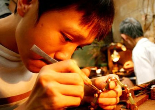 Lớp trẻ Kế Môn tiếp nối nghề kim hoàn. (Ảnh qua langkemonsaigon.com)