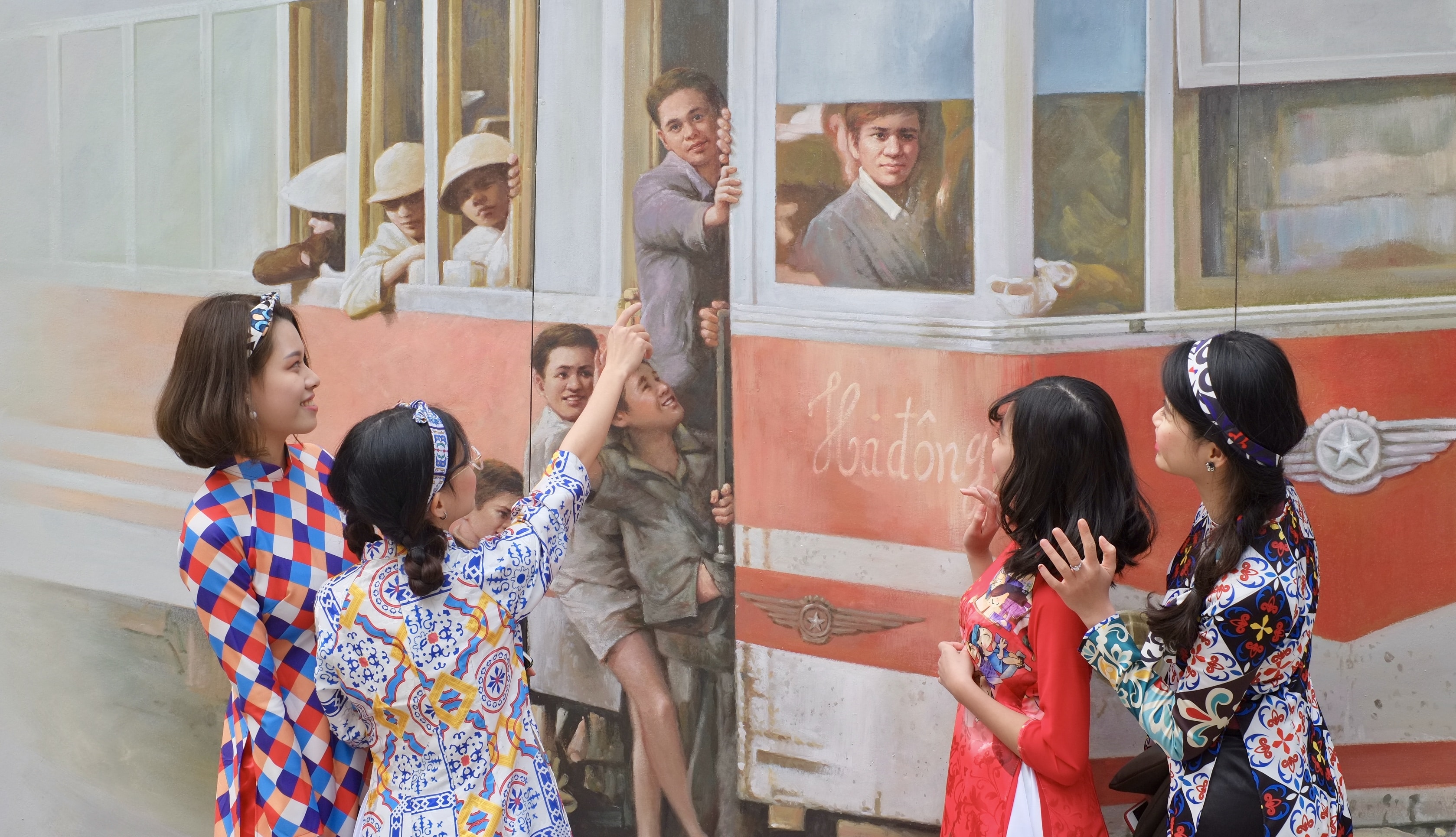 Người dân thủ đô xúng xính áo dài chụp ảnh tại phố bích hoạ Phùng Hưng