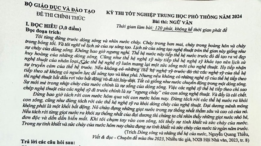 Đề thi môn văn THPT quốc gia 2024 gây ra một sự tranh luận nho nhỏ xung quanh câu đọc hiểu trên Facebook một số nhà văn.