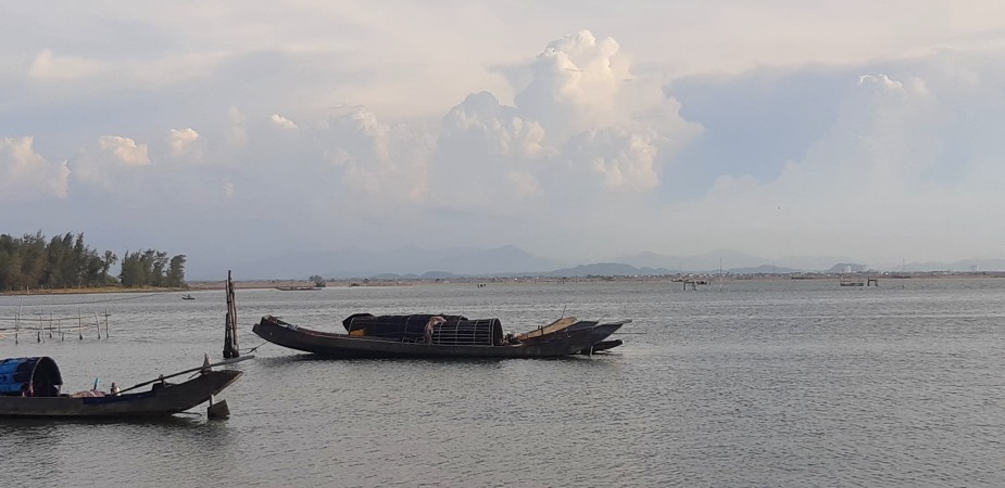 Tôi dừng trên đường về nơi mảnh đất ngăn cách, một bên là biển Thuận An mênh mông diều bay trên bãi, một bên là phá Tam Giang, dãy núi xa xa, vài thuyền ghe neo “bến”. Đến Huế người ta chỉ tìm đến hoàng cung lăng tẩm, bỏ qua chỗ hẻo lánh này thành thử phá Tam Giang cảnh đẹp còn hoang dã, dân tình chất phác.