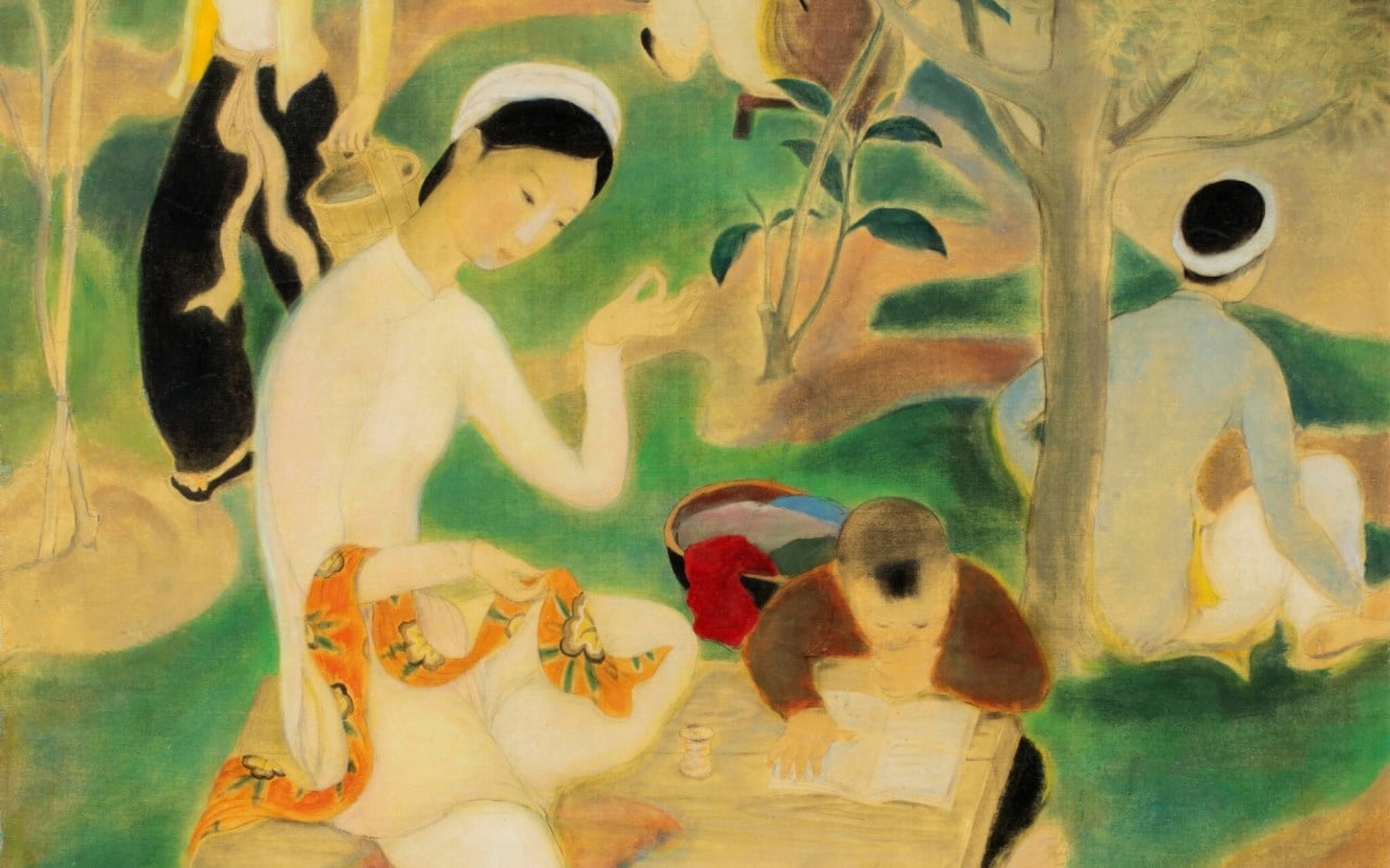Tranh "Gia đình trong vườn" của họa sĩ Lê Phổ.