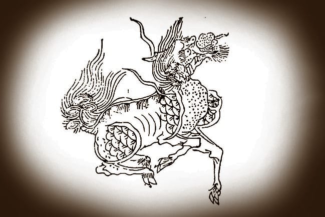 Kỳ lân là con vật trong truyền thuyết, người Trung Quốc xưa tin rằng bắt được lân là điềm báo hiệu đất nước thái bình. Tuy là truyền thuyết, nhưng lân được mô tả trong sách cổ; Phù Thụy Đồ đời Hán chép “Lân là thú có lòng nhân, thân hình giống như con quân, đuôi trâu, 1 sừng, cuối sừng có thịt.” Hán Việt Tự điển Thiều Chửu ghi quân là con chương; mà không giải thích rõ chương là con vật như thế nào. Sách Nhĩ Nhã 1 chép “con quân, lớn như con nai, có 1 sừng.”