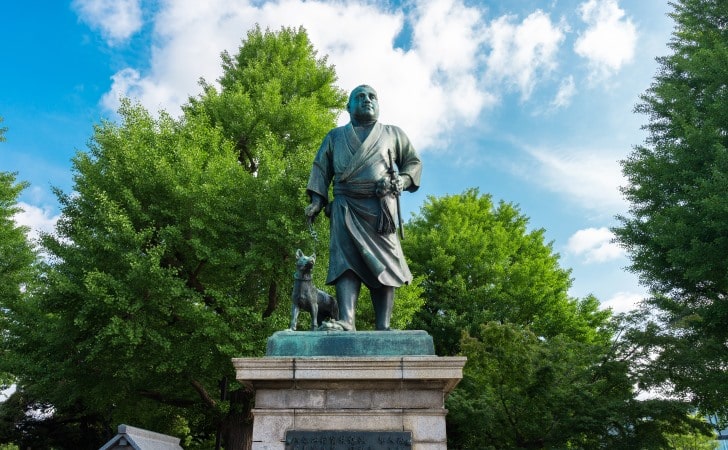 Vào mùa xuân đất nước Nhật Bản rực rỡ trong sắc hoa anh đào. Bởi hoa anh đào chỉ nở trong vòng có một tuần nên dù bận mấy người Nhật cũng thu xếp thời gian cùng người thân đi ngắm hoa. Nếu bạn đến Tokyo vào mùa hoa anh đào nở, chắc chắn bạn bè người Nhật sẽ gợi ý bạn đến thăm công viên Ueno. Khi dạo bước trong công viên bạn sẽ thấy bức tượng tạc một người đàn ông đi bộ dắt theo con chó. Người đàn ông trong bộ trang phục Nhật Bản đó là Saigo Takamori – người anh hùng của Minh Trị Duy Tân.