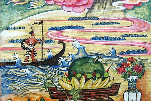 Tục truyền đời vua Hùng Nghi Vương nuôi được ngườỉ con trai lên 7, 8 tuổi. Thấy đứa trẻ mặt mũi khôi ngô tuấn tú, nhà vua đặt tên là Mai Yến hiệu An Tiêm, cho học rồi lấy cho một người vợ, sau lại phong quan tước. Từ khi làm quan, An Tiêm được bổng lộc đầy nhà, ăn sung mặt sướng, nhưng thường nói với vợ và gia nhân rằng: “Những của cải bổng lộc mà ta hưởng ngày nay tức là những công quả của ta ở đời trước cả; vậy đời này ta cần phải tu nhân tích đức thì kiếp sau ta sẽ được hưởng nhiều sự hay.”